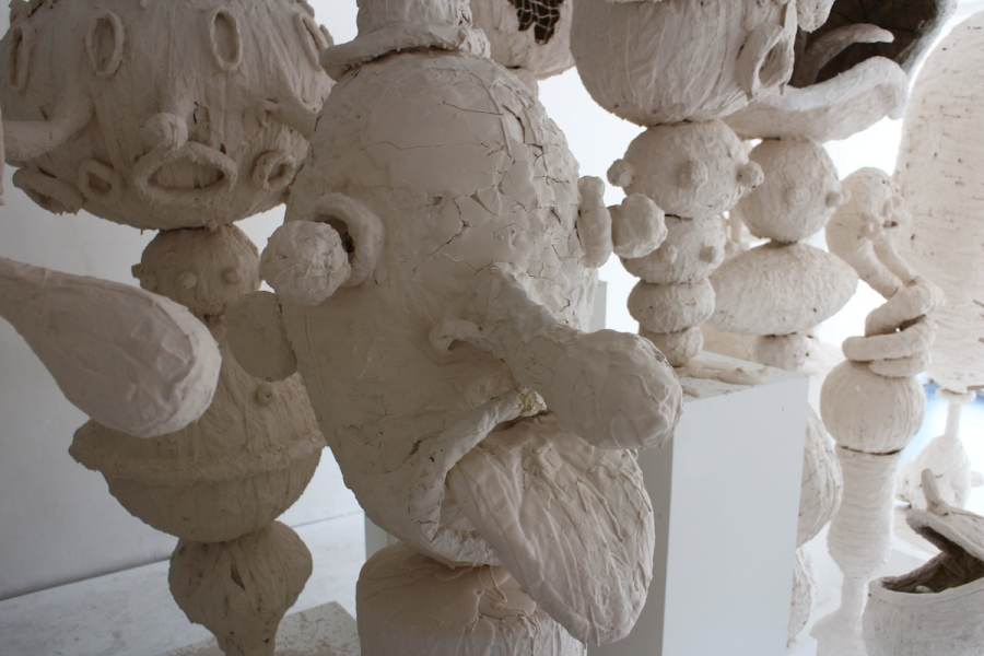 کارد: مدت زمان زیادی طول کشید تا بتوانم پی به این موضوع ببرم و تصمیم به برپایی این نمایشگاه بگیرم و در نهایت "جاذبههای شگفت انگیز پارک مخروبه" را برپا کردم. کمی استعاره دارد. وقتی که در حال ویرایش بعضی از آثار هستم، زمانی ایجاد میشود تا با تیم مجموعه گالری صحبت کنم و درباره نوع نگاهم به آنها توضیح دهم. آنها را وادار به فکر میکنم که چطور پارکی تنها رها شده است و ما این اجازه را به آن دادیم که تخریب شود. من در واقع به شکل کارتونگونه آن علاقه دارم: بزرگ، دوست داشتنی، گرد و مهربان. ایده مجاورت این دو در کنار یکدیگر، مخروبه و شکل کارتونگونه آن، من از کلمه همنشینی بدم میآید. همنشینی بین چیزی که دوست داری و چیزی که تلاش میکنی آن را تحقق ببخشی. گاهی باید تمام تلاشت را بکنی تا چهرهات همیشه خندان بهنظر برسد اما نمیشود، من فلزات را جذاب میکنم و با چکش به آنها میکوبم تا فرم دلخواهم را بگیرد، شما میتوانید آثار را در دل این فلزات ذاب نگاه کنید، این چیزی است که مرا هیجان زده میکند. همه ما آن را ار کودکی به خاطر داریم: چیزی شیرین و زیبا، همراه شدن با چیزی شیطانی و نابهنجار برای دیدن و درک شیرینی آن.