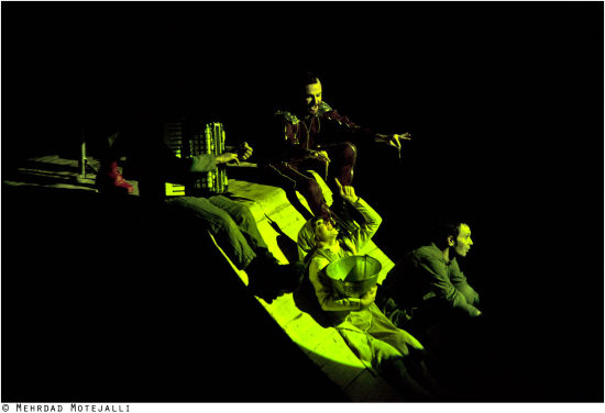صحنه‌ای که رضا ثروتی برای نمایشش انتخاب کرده است، محل آغاز این بحران است. یک باریکه‌ی چوبی و نا‌هم‌سطح که در عرض سالن امتداد یافته‌است.
