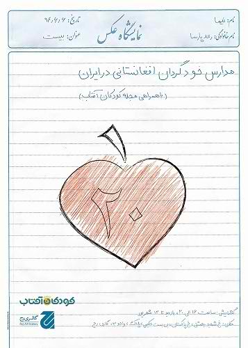 نمایشگاه مدارس خودگران افغانستان در ایران با حمایت مجله کودکان آفتاب و یاری سردبیر مجله سید نادر موسوی که خود نیز از مهاجرین افغان است از ششم تا 12 شهریور ماه آینده از ساعت 16 تا 20 در «گالری رج» واقع در خیابان شهید بهشتی، خیابان پاکستان، کوچهی حکیمی، پلاک 4 زنگ 3 برگزار خواهد شد.