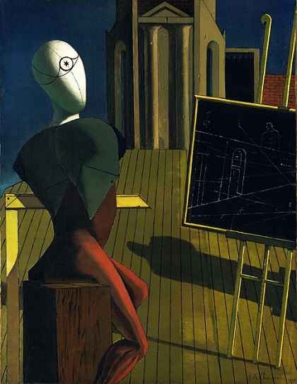 دکریکو در سال های 1909 و 1910 را با وجود بیماری سخت روده و دستگاه گوارشی با پشتکاری حیرت انگیزی به خلق نقاشی های شبه سوررئالیستی خود پرداخت و بر آنها عنوان «نقاشی های متافیزیکی» نهاد . آمیزه ی نقاشی بوکلین و گراوورهای ماکس کلینگر، نوشته های نیچه درباره ی معانی تغزلی و نهفته در پشت شکل ظاهری اشیاء و نوشته های شوپنهاور و رویاهای نمادین او همه و همه سبب شدند تا جهان نقاشی های متافیزیکی دکریکو شکل بگیرد.