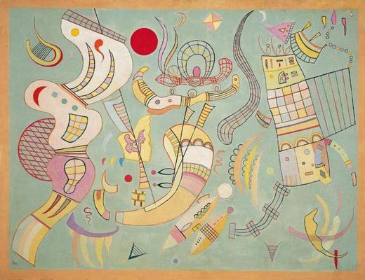 واسیلی کاندینسکی نقّاش و نظریهپرداز روسی بود. در سی سالگی شغل مشاورهی حقوقی را رها میکند و راهی مونیخ میشود تا در رشتهی نقاشی (از جمله نزد فرانتس فُن اِشتوک) هنرآموزی کند. کاندینسکی را از پیشگامان بزرگ هنر انتزاعی به شمار میآورند. او بر این عقیده بود که آنچه در هنر مهم است، نه عنصر «فرمال» بلکه انگیزهای باطنی (محتوا) است که عامل قطعی تعیینکنندهی فرم است. او به وجود نیروی باطنی ناشناختهای در وجود هنرمند باور داشت که از آن با عنوان «ارتعاشهای جان» یاد میکرد. او بر این عقیده بود که این نیرو در اختیار ما نیست، بلکه ما در اختیار اوییم. هنر کاندینسکی استوار است بر تباینهای تجسمی، کنار هم نهادن سطوح، نقطهها و خطها، عناصر افقی و عمودی و اریب، منحنیها و زوایا، نرمی و زبری، تکرار موزون و تکْرخدادها، بزرگی و کوچکی و جز اینها، نوعی توالی مداوم از تنشهای بصری پدید میآورند که باید خنثی شوند. اجزای گسسته و کلهای پیوسته، تنش و رهش، سرانجام در قالب یک کلّ تصویری متعادل جمع میآیند. کاندینسکی همواره به توصیهی گوگن دربارهی کاربردِ رازگونهی رنگ اعتقاد داشت. او ایجاد هماهنگی را نامناسبترین چیز برای زمانهاش میدانست.
